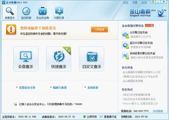 為解決安全模式被破壞,安全模式進(jìn)不去,進(jìn)入安全模式藍(lán)屏等問題,金山毒霸最新版本內(nèi)置了安全模式修復(fù)功能,只需要啟動(dòng)金山毒霸進(jìn)行快速查殺,最新的修復(fù)腳本會(huì)自動(dòng)檢查與安全模式運(yùn)行有關(guān)的注冊表鍵,并自動(dòng)對被破壞的注冊表鍵進(jìn)行修復(fù)。