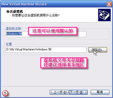 5、輸入虛擬機(jī)名和存放虛擬機(jī)文件的文件夾的路徑: