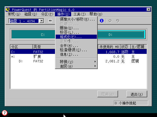 (7)繼續(xù)用安裝盤(pán)自帶的PQ6.0DOS版格式化。