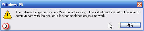 (3)彈出提示虛擬機(jī)VMnet 0網(wǎng)橋沒(méi)有運(yùn)行無(wú)法和主機(jī)及其他機(jī)器通信,不要理會(huì)單擊“確定”。