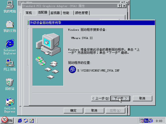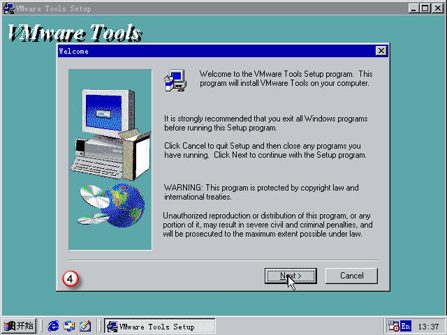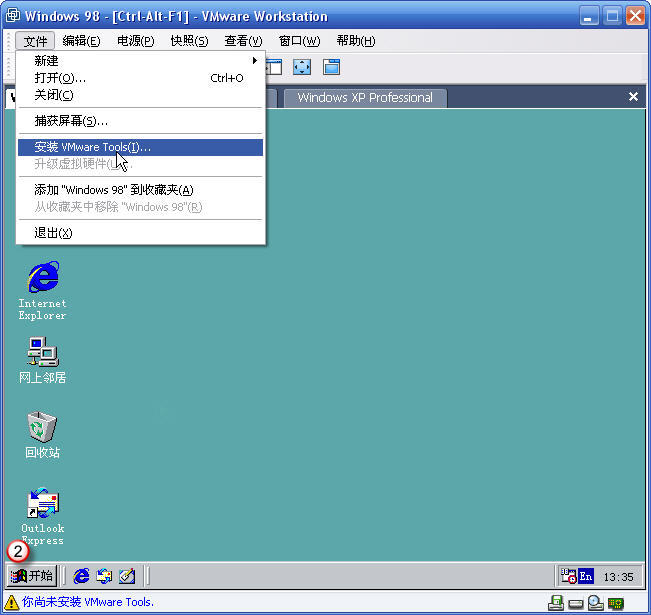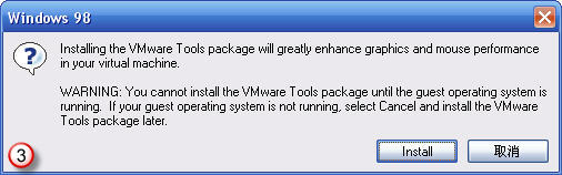 四、安裝VMware Tools工具包并且設(shè)置WIN98的顯示色.