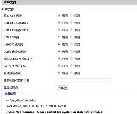 在刷了DD-WRT固件的無線路由器中可選擇掛載設(shè)備的類型