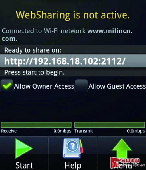方法很簡單,在平板電腦上安裝WIFI無線傳輸軟件,運行后會顯示本地IP地址和端口,此時勾選任何用戶可訪問(如圖4),然后單擊“Start”按鈕,此時會自動搜索無線局域網(wǎng)。軟件連接到WIFI網(wǎng)絡(luò)后,會提示你訪問平板電腦的IP地址以及訪問時的密碼等信息(如圖5)。