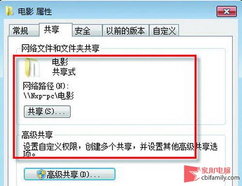 ●圖2 將電影目錄設(shè)為共享模式