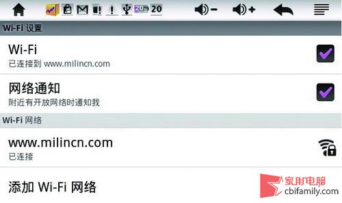 以筆者的臺電T720平板電腦為例,首先在家里用無線路由器搭建無線局域網(wǎng),進入平板電腦的“設(shè)置→無線和網(wǎng)絡(luò)設(shè)置”頁面,開啟“Wi-Fi”選項,并讓平板電腦接入無線路由器(如圖1)。