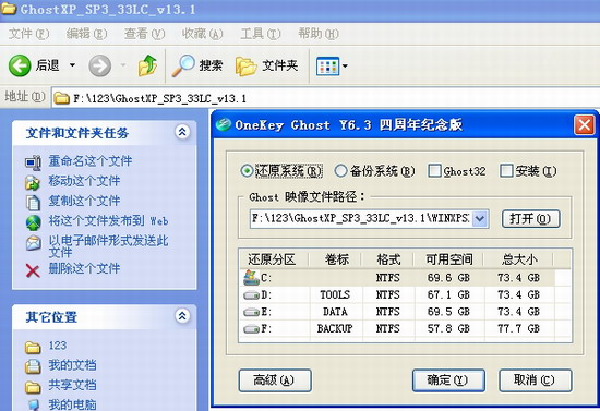 這個(gè)就是因?yàn)槲野?ldquo;GhostXP_SP3_33LC_v13.1”文件夾放到“新建文件夾”里面了。而硬盤安裝器不能支持中文路徑。遇到這種情況,先關(guān)閉硬盤安裝器。然后到F盤把“新建文件夾”隨便改成非中文形式就可以了,比如:123. 當(dāng)然了,你不能在硬盤安裝器直接修改中文文件夾,看看我的小示范圖