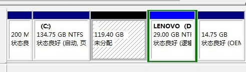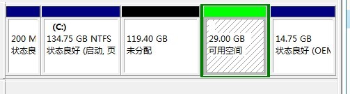 1.win7系統(tǒng)下,正常已經有100MB引導分區(qū)+系統(tǒng)所在分區(qū)+隱藏分區(qū),此三個分區(qū)均屬于主分區(qū),因此必須把剩余所有空間都劃到擴展分區(qū)(系統(tǒng)自動建立)中才能順利分區(qū)。