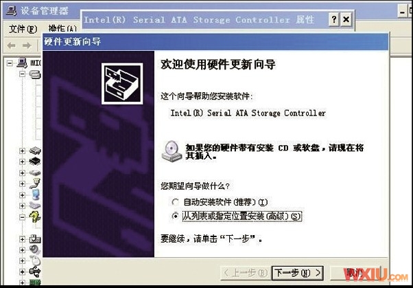 1、在“我的電腦”上單擊鼠標右鍵,在彈出菜單里選擇“設備管理器”,然后在彈出界面里雙擊展開“IDE A-TA/ATAPI控制器”,在這里可以看到已經(jīng)安裝了普通驅(qū)動的磁盤控制器,在上面單擊右鍵,在彈出菜單里選擇“更新驅(qū)動程序”。在彈出頁面中注意選擇“從列表或指定位置安裝”。