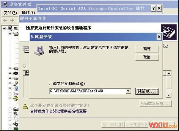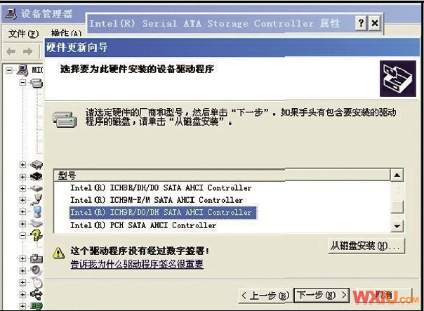 4、在其中找到對應的驅(qū)動程序,注意所選擇的驅(qū)動程序一定要和主板芯片組相符合。此時系統(tǒng)會彈出一個警告,表示這個驅(qū)動程序可能存在問題,不用管它,直接點擊“是”。之后系統(tǒng)會藍屏,這是正常的。