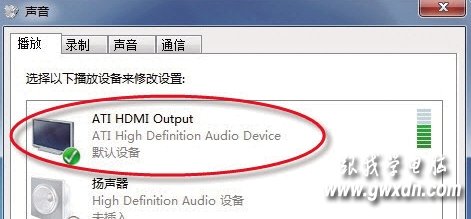 右鍵單擊“ATI HDMI Output”圖標,選擇“啟用”選項后,那個液晶電視圖標上會顯示一個綠色“√”(如圖3),這表示成功將HDMI音頻作為了默認播放設(shè)備。