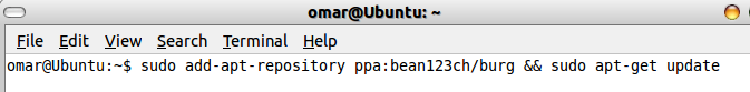 sudo add-apt-repository ppa:bean123ch/burg && sudo apt-get update