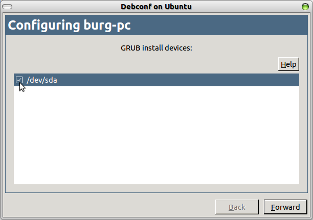 第二個(gè)窗口時(shí)你需要告訴burg安裝在什么地方.選擇你的Ubuntu的根驅(qū)動(dòng)器,如果你有/boot目錄的話,就選擇/boot目錄.