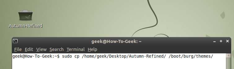 sudo cp *PathToFile*/Fortune-BURG-v03.tar.gz /boot/burg/themes