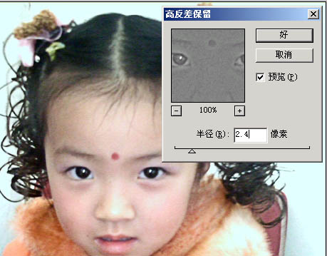 8、在“高反差保留”對話框中,把半徑設(shè)成2.4像素,“好”確定。如下圖。