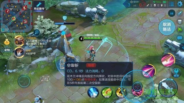 花木蘭輕劍狀態(tài)下的一技能空裂斬,是一段位移技能,如果擊中敵方英雄或小怪時,可以繼續(xù)使用第二段,在面對敵方脆皮英雄時,如果你和他之間隔有兵線的話,可以借助兵線,然后使用一技能擊中小兵,借助小兵靠近敵方英雄,然后使用二技能擊打?qū)Ψ剑僖暻闆r而定,是否要繼續(xù)使用一技能上前,如果二技能沒擊中,不必急于沖,如果二技能擊中了,就可以繼續(xù)使用一技能上去后,接大招,打出一套傷害。