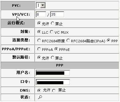 第二步:點擊ATM設置。我們選PVC-1,配置如圖,填寫ISP提供的用戶名和密碼,完成提交