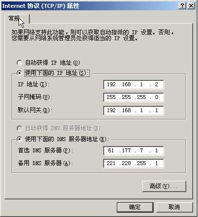 DNS(以蘇州電信為例)設置,主:61.177.7.1輔: 221.228.255.1