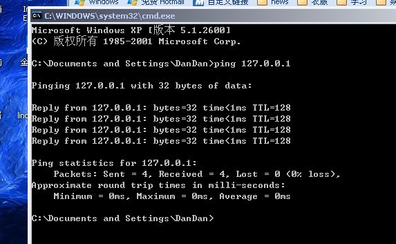 1 確認下TCP/IP協(xié)議是否正常工作,這里我采用的是ping 127.0.0.1 ,結(jié)果是正常的