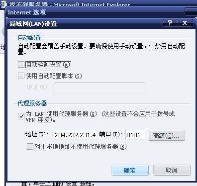 3 想到自己之前遇到過的一種情況,使用某個HTTP抓包工具(這個軟件會設(shè)置代理)異常退出以后也曾經(jīng)出現(xiàn)過類似的情況,于是打開IE瀏覽器-工具-Internet 選項-連接-局域網(wǎng)設(shè)置 查看了代理服務器的設(shè)置,發(fā)現(xiàn)這里果然有問題,于是取消代理設(shè)置以后重啟瀏覽器訪問網(wǎng)站恢復正常了