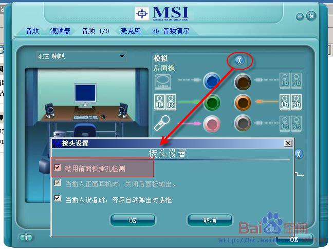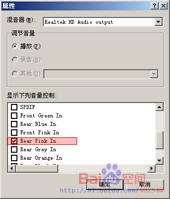 選中rear pink in (麥克風(fēng)要插在后面板的粉紅色插口中,插在前面板相應(yīng)設(shè)置Front pink in)