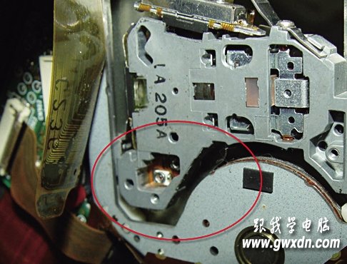 在光驅組件里找到調節(jié)電阻。如果學過電工電子學,應該會知道電位器大致長啥樣。如果沒學過也不要緊,看圖照圖片這種長相找調節(jié)電阻。有的光驅調節(jié)電阻在激光頭背面,有的在側面,當然還有部分光驅找不到調節(jié)電阻。