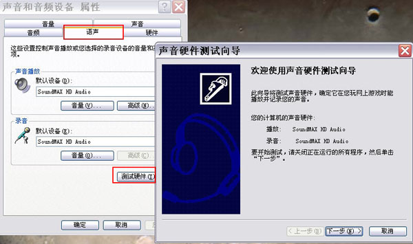 右擊右下角的小喇叭圖標(biāo),選擇調(diào)整音頻屬性.然后選擇語(yǔ)聲,然后選擇測(cè)試硬件,然后按向?qū)崾?進(jìn)行測(cè)試完硬件,問題解決.