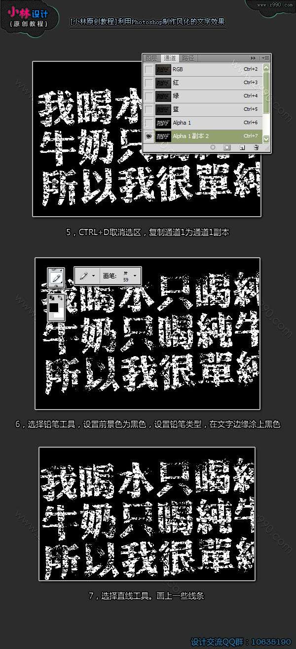 6,選擇鉛筆工具,設(shè)置前景色為黑色,設(shè)置鉛筆類型,在文字邊緣涂上黑色;