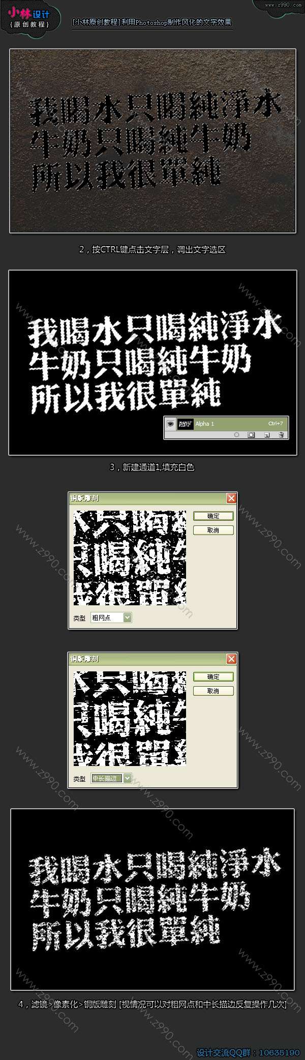 4,濾鏡>像素化>銅版雕刻; (視情況可以對粗網(wǎng)點(diǎn)和中長描邊反復(fù)操作幾次)(#分頁#)