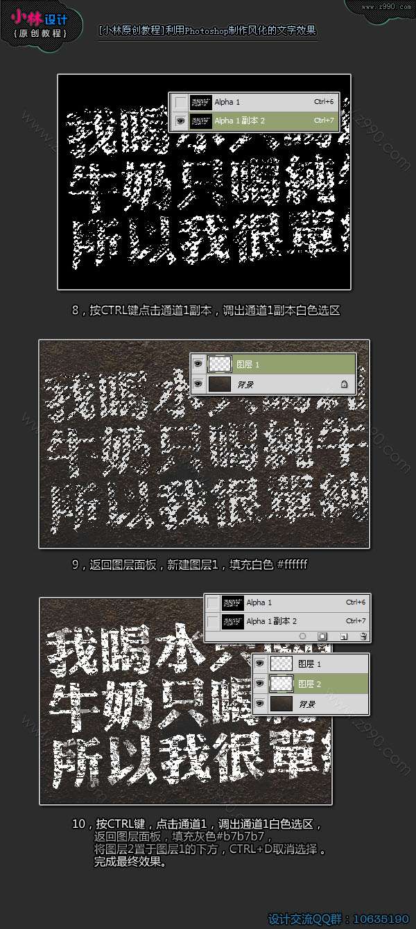 10,按CTRL鍵,點(diǎn)擊通道1,調(diào)出通道1白色選區(qū),返回圖層面板,新建圖層2,填充灰色 #B7B7B7,將圖層2置于圖層1下面,CTRL+D取消選擇。完成最終效果。