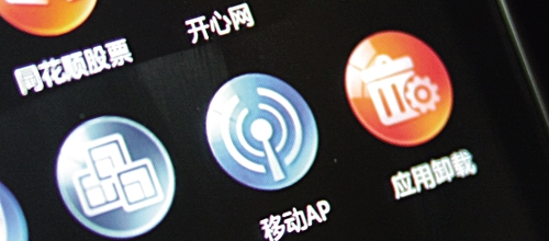 所有帶有WIFI功能的智能手機(jī)都能充當(dāng)無線AP的功能,只不過不同系統(tǒng)的手機(jī)需要安裝不同的AP軟件。以筆者的聯(lián)想樂Phone手機(jī)為例,該機(jī)內(nèi)置WIFI無線功能。把系統(tǒng)版本升級(jí)為Android 2.2系統(tǒng)后,系統(tǒng)已經(jīng)自帶了一個(gè)無線AP工具。即便沒有AP工具,也可以從軟件商店里進(jìn)行安裝。
