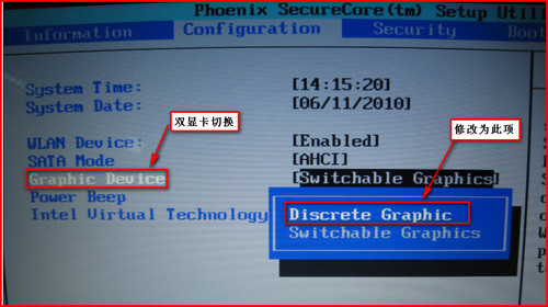2、由于Y460/Y560機型出廠均有雙顯卡(配備intel I7-720QM CPU的不支持雙顯卡切換),由于XP系統(tǒng)較老,在雙顯卡切換開啟的情況下只能識別到集成顯卡,即無法識別ATI獨立顯卡,導致ATI獨立顯卡驅動無法安裝成功。