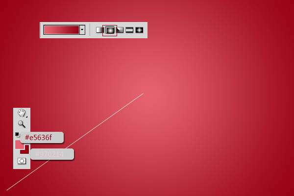 4、新建一個(gè)畫布,我這里設(shè)置是600X400像素的。設(shè)置前景色為“#e5636f ”,背景色為“#970214”。使用徑向漸變從中間往外面拉。
