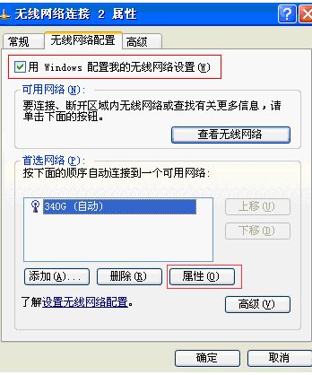 3. 在“無線網(wǎng)絡(luò)配置”中選擇所要連接的網(wǎng)絡(luò),點(diǎn)擊“屬性”。
