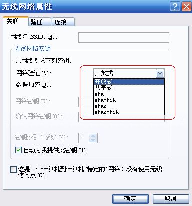 二、 如果無線路由器中設(shè)置的是WPA-PSK/WPA2-PSK加密出現(xiàn)這種情況最大的可能是系統(tǒng)不支持這種加密方式。查看本機(jī)系統(tǒng)是否支持該加密方式:“無線網(wǎng)絡(luò)屬性”中選擇“關(guān)聯(lián)”,在“網(wǎng)絡(luò)驗證”中查看一下您的系統(tǒng)是否支持路由器中設(shè)定的加密方式。