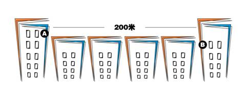 我與父母的住處分別為A、B兩點(diǎn),A為發(fā)射端,B為接收端。A、B兩點(diǎn)直線距離約200米,分別位于兩棟6層樓的5樓和4樓,中間隔有4棟6層樓房,所有樓頂除太陽能熱水器外基本沒有其它障礙物,兩處樓頂能直接看到。