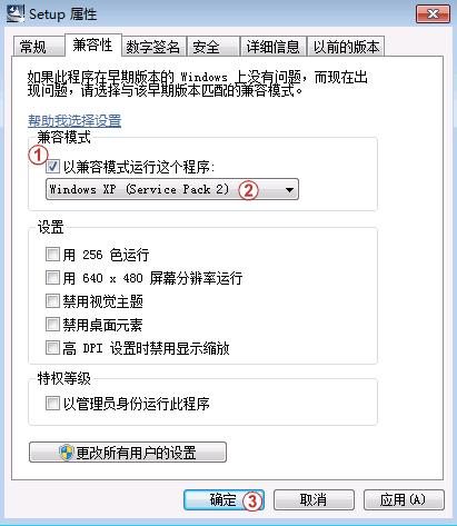 1.右鍵這個(gè)程序,選“屬性“,點(diǎn)開(kāi)“兼容性”選項(xiàng)卡,勾上“以兼容模式運(yùn)行這個(gè)程序”,按確定。