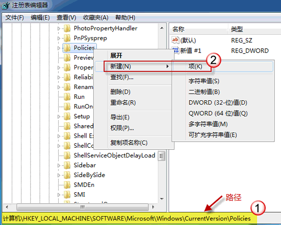 找到 ActiveDesktop 項。(如果沒有,請右擊“Policies”,選擇“新建->項”,并命名為 ActiveDesktop)