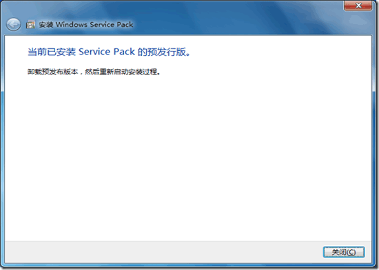 此外,請注意!如果先前安裝過 SP1 的 Beta 或 RC 版本,那么獨立更新包的安裝會中斷,并提示要卸載先前的版本才能繼續(xù)執(zhí)行更新安裝。要卸載以前安裝的 SP1,可以參考如何卸載 Windows 7 Service Pack 1 (SP1)。