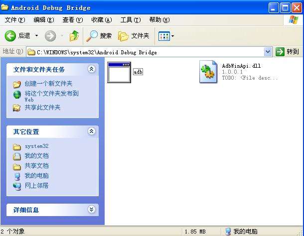 3. 下載ADB程序到電腦并解壓,將解壓得到的ADB文件夾復(fù)制到電腦的C:\windows\ system32 文件夾里。(我的電腦使用的是XP系統(tǒng),如果使用windows7系統(tǒng)的請放在C:\windows\system文件夾里。