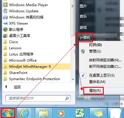 1.單擊“開(kāi)始”,右鍵單擊“計(jì)算機(jī)”,然后單擊“屬性”。