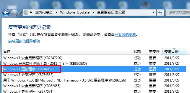 檢查系統(tǒng)是否安裝了“更新 976902”,Windows Update 中才會(huì)提供 Windows 7 SP1