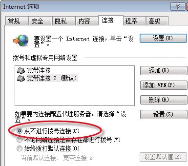 圖3 選擇“從不進(jìn)行撥號連接”