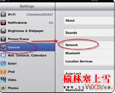 ad中進入設置菜單,可以點擊主頁Dock上的圖標進入。在設置菜單中選擇“通用(General)”中的“網(wǎng)絡(Network)”。有的同學使用的是英文版(例如我),這里也一并給出英文。