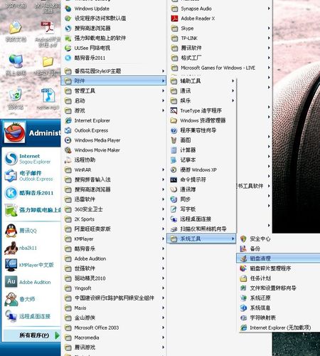 - 點(diǎn)擊開始-所有程序-附件-系統(tǒng)工具--磁盤清理。