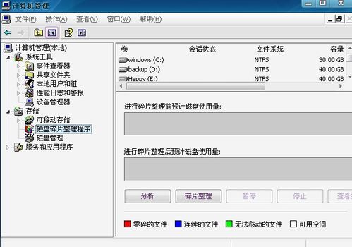 - 在計(jì)算機(jī)管理對話框選中磁盤碎片整理程序,可以看到右邊會列出磁盤跟詳細(xì)信息。