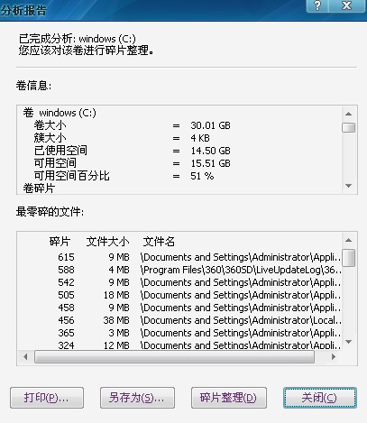 - 查看分析報(bào)告,不喜歡的話也可以跳過這步,直接碎片整理。
