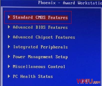 1、重新啟動電腦,在未進入系統(tǒng)之前按下“Del”鍵進入BIOS設置主界面,然后選擇“Standard CMOS Features”選項。