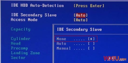 3、隨即進入“IDESecondary Slave”設置界面,然后選擇“IDE Secondary Slave”選項,按下“Enter”鍵進入期設置界面,在次界面中選中“None”選項。