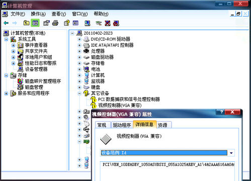 - 打開設(shè)備管理器(運(yùn)行devmgmt.msc),雙擊視頻控制器,點(diǎn)擊詳細(xì)信息,記下設(shè)備范例ID,類似“PCI\VEN_10DE&DEV_1050”,從下面的列表可以看出每款顯卡對(duì)應(yīng)的設(shè)備ID。
