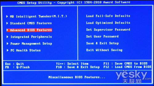 - AWARD的啟動(dòng)順序調(diào)節(jié)在Advanced BIOS Feature(高級(jí)BIOS屬性)里